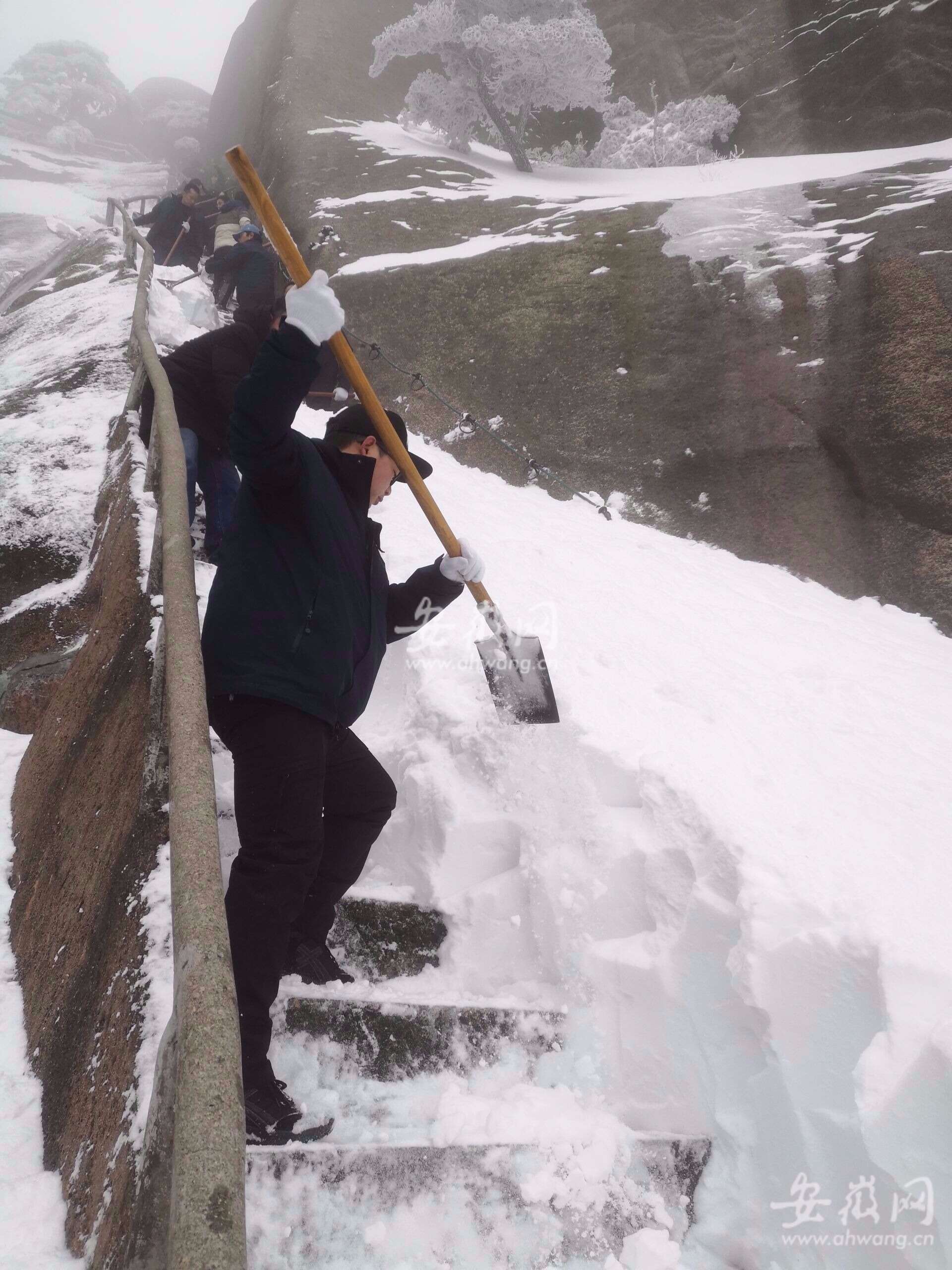 同时,派出铲雪车,组织8支铲雪突击队,明确分工,铲雪突击队分布景区各个重要旅游线路节点,齐心协力,铲雪除冰,清除彩虹公路两旁积雪压弯的枝条,清扫路面积雪。经过连日辛苦奋战,于2月8日13时全面贯通天柱山神秘谷_总关游线。