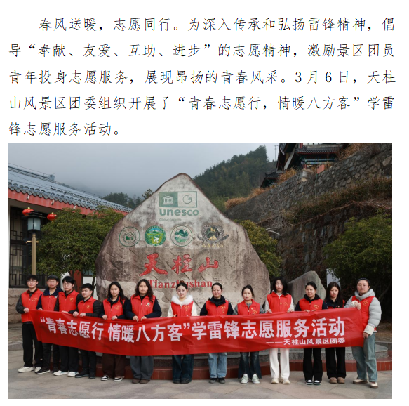 天柱山风景区团委开展“青春志愿行,情暖八方客”学雷锋志愿服务活动