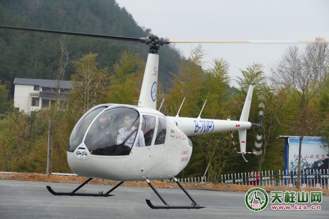 据了解,汉驰航空天柱山直升机飞行基地位于天柱山茶庄村P1停车场,该项目一期工程已经顺利落地,工程配备建设有6000平方米的直升机停机坪,游客服务中心,航材设备间等。日常游览执飞的R44直升机采用最新开发的液压助力系统为标准设备,消除了驾驶杆机械传动产生的振动现象,使驾乘更轻松柔和;该机具有高安全性、多用途、低成本、低运行条件的特点,同时其飞行灵活机动,安全系数高。用于客运和公务包机,可安装座位4座,能够出色胜任航空摄影、航空跳伞、通勤飞行、应急救援等多种作业任务。