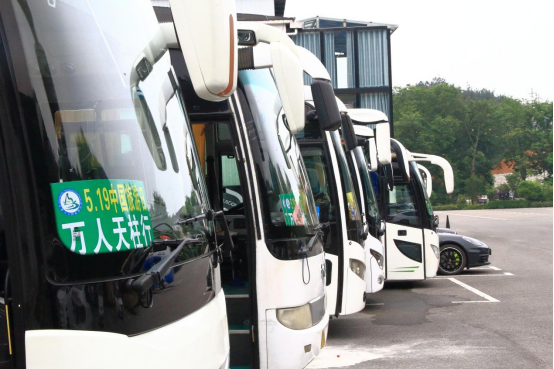 “中国旅游日”当天,天柱山风景区举办了“文明旅游、诗画天柱、幸福中国”—全国旅游直通车万人共攀天柱峰活动,迎来了来自省内外直通车共计百余辆。