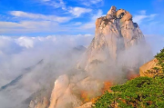 特色: 坐落于潜山西部的天柱山,以1489.8米的海拔突兀众峰之上,一柱擎天,直插云霄。唐代著名诗人白居易盛赞“天柱一峰擎日月,洞门千仞锁云雷”。李白诗云:“奇峰出奇云,秀水含秀气”。其自然与人文景观的高度集中,让每一个旅游爱好者都渴望插上翅膀,在天柱山的上空翱翔,一并领略这大好河山的魅力与多姿。 时值十月,秋意在这儿显得愈加浓厚。色彩斑斓,层林尽染,就连那石柱上、石缝...